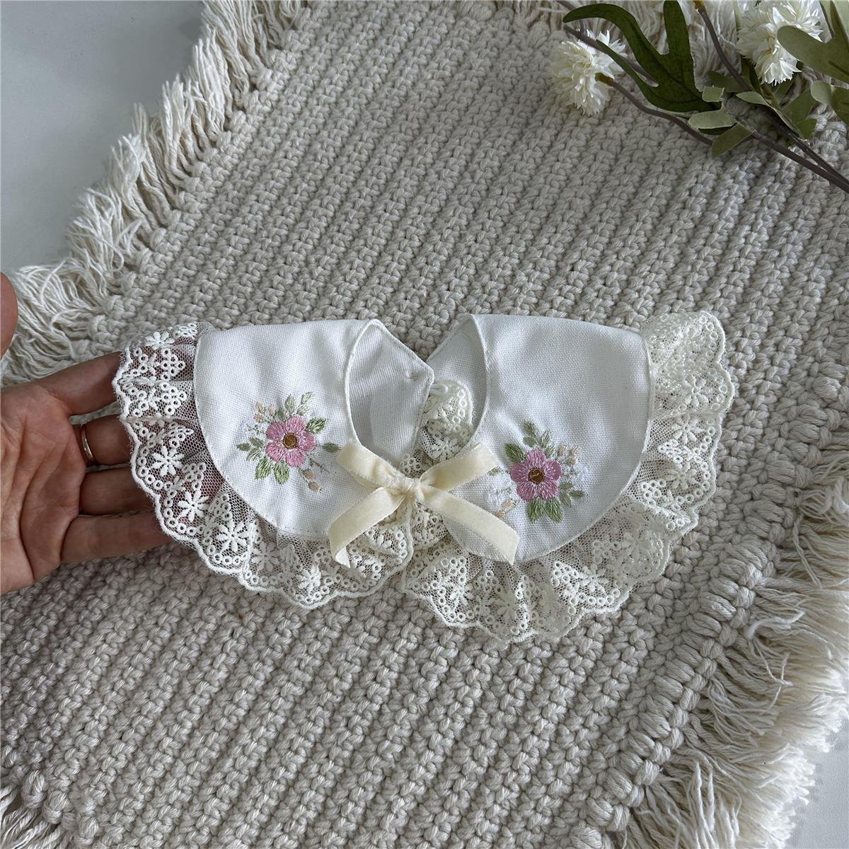 A Gola Melodia é um detalhe que transforma. Feita em tom off-white, com bordados florais delicados em tons suaves de rosa e verde, ela carrega a leveza das memórias mais bonitas da infância. O acabamento em renda traz um toque clássico e atemporal, enquanto o laço central finaliza com suavidade e encanto como uma verdadeira melodia que completa o look.