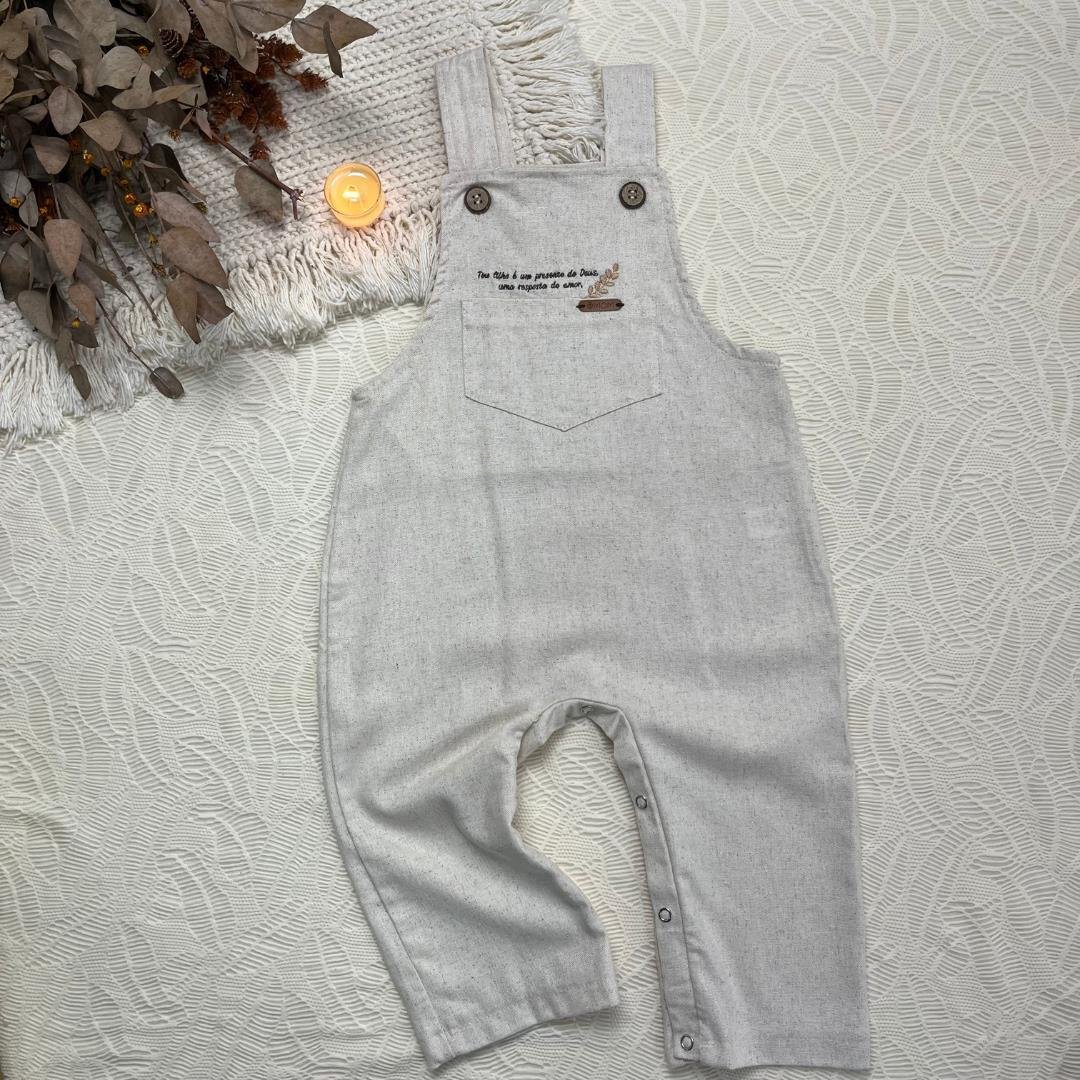 Jardineira atemporal e cheia de significado, pensada para vestir os primeiros momentos com conforto e delicadeza. Confeccionada em linho misto (55% Linho 45% Viscose), possui toque macio, caimento leve e detalhes que valorizam a peça, garantindo praticidade e charme no dia a dia ou em ocasiões especiais.Uma peça feita para criar memórias e eternizar o início de uma linda história