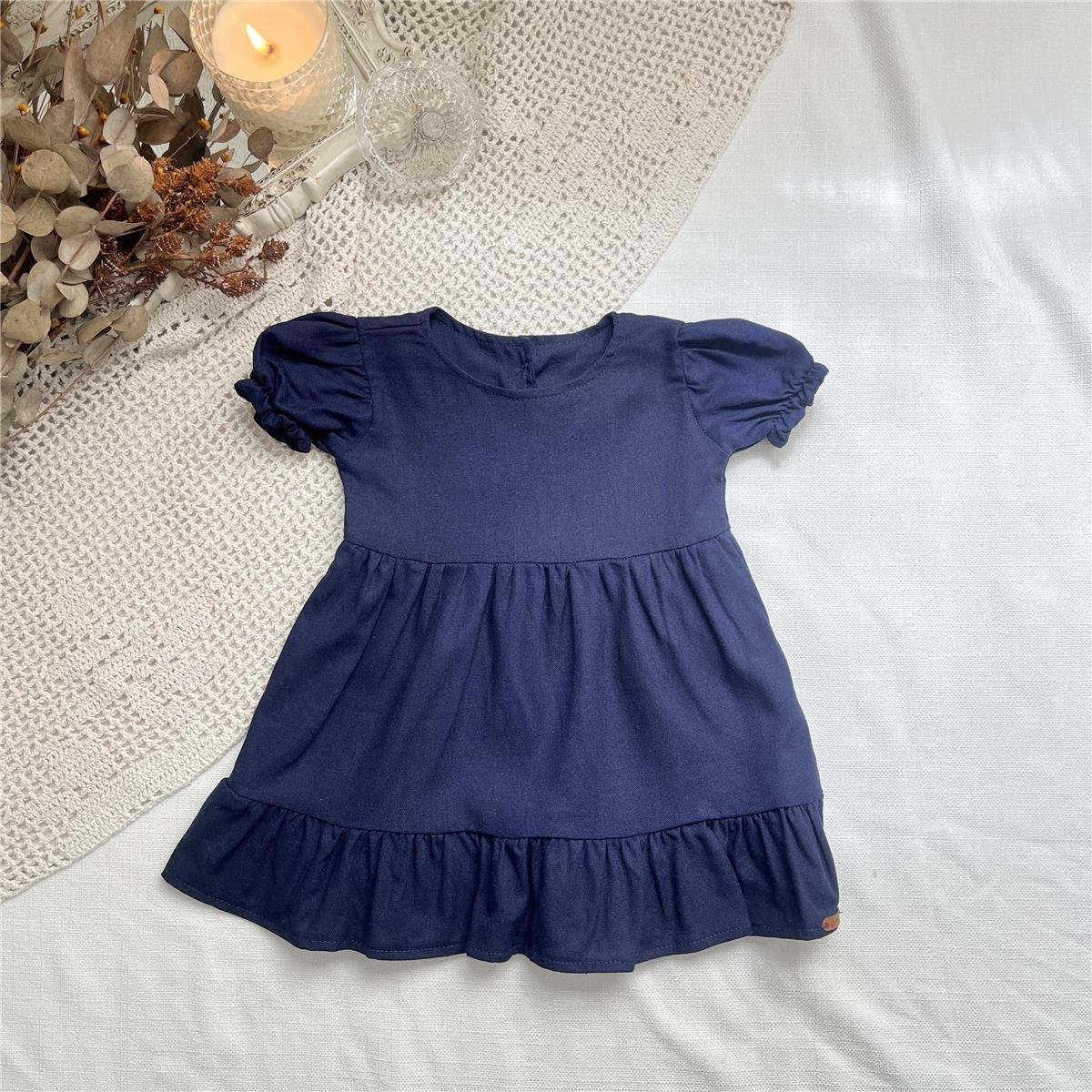 Vestido Melodia de VerãoConfeccionado em linho misto (55% linho e 45% viscose), traz leveza e conforto em cada detalhe. Com mangas bufantes, babado na barra e abertura com botões nas costas, é uma peça prática, charmosa e atemporal para os dias ensolarados.