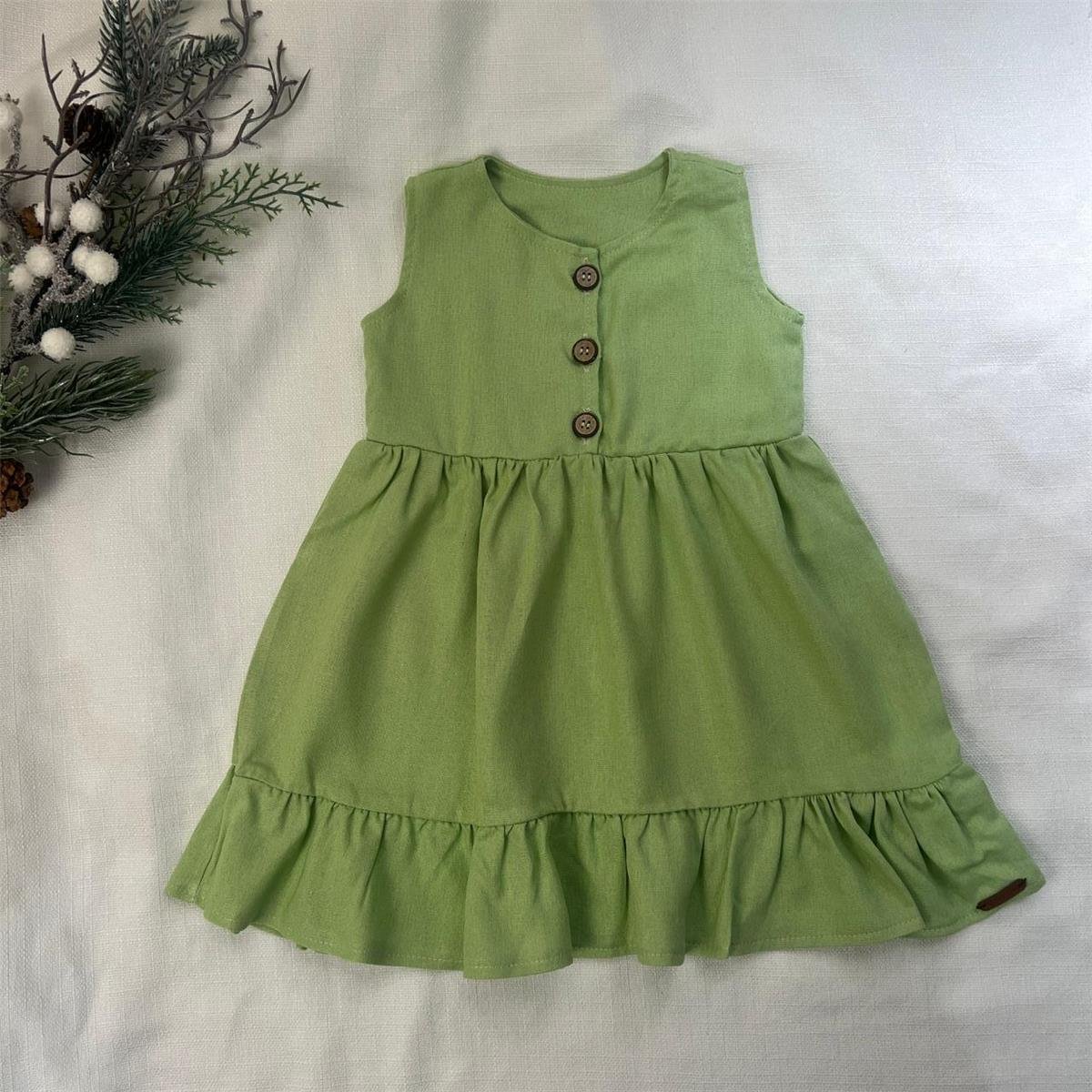 O Vestido Serena é confeccionado em linho misto premium (55% linho e 45% viscose), oferecendo leveza, conforto e aquele toque macio que a pele das pequenas merece. Com modelagem fluida, babado na barra e detalhe encantador de botões frontais, ele é perfeito para acompanhar cada descoberta com liberdade e charme. Atemporal e versátil, combina com todas as estações e ocasiões especiais.Estamos no mercado desde 2016, prezamos pela qualidade e conforto dos nossos pequenos, aliado ao estilo dos mesmos.